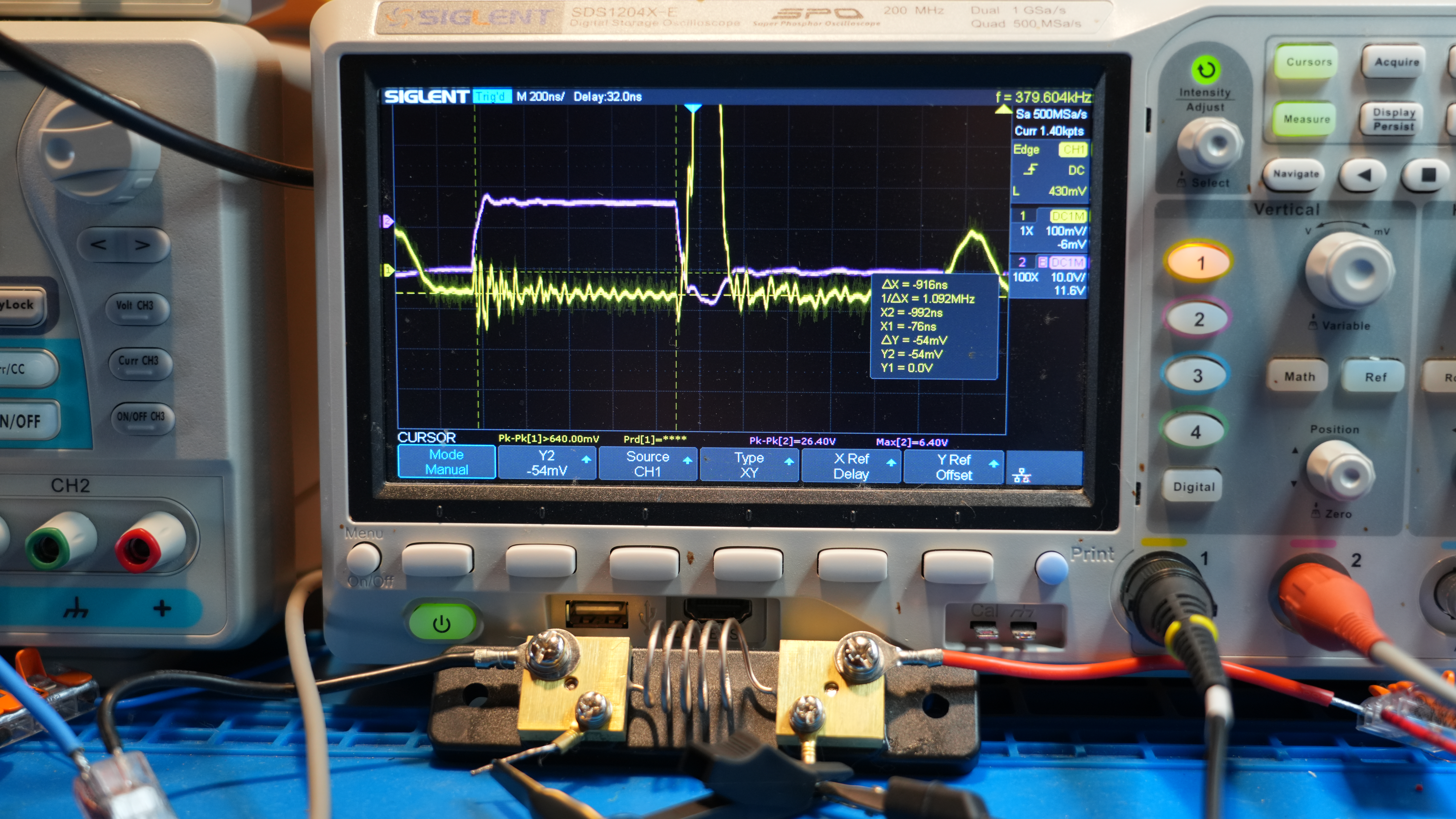 - Фиксировалось линейное нарастание напряжения на шунте в фазе накопления энергии